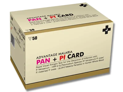 Advantage Malaria PAN+Pf Card is a rapid, visual and sensitive immunoassay for the qualitative diagnosis of infection with P.falciparum and other Plasmodium species (P.falciparum/P.vivax/P.malariae/P.ovale) in human whole blood only.