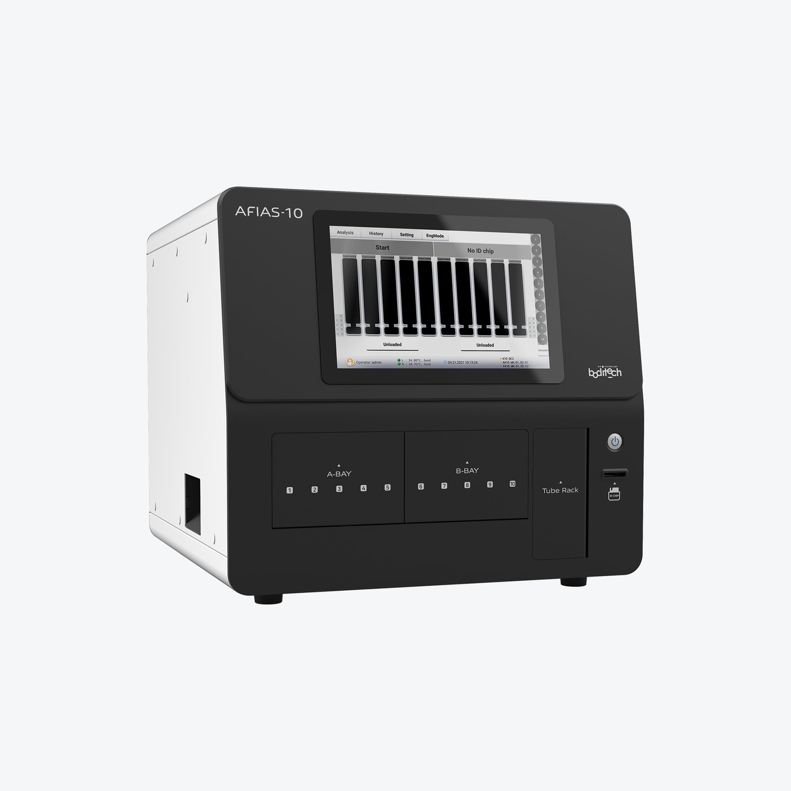 AFIAS-10 is a unique integrated Sample-to-Answer system that can execute 10 parallel tests for each different parameter. AFIAS-10 provides a quick and simplified operation and reliable test result with automatically collecting a sample from a blood tube.