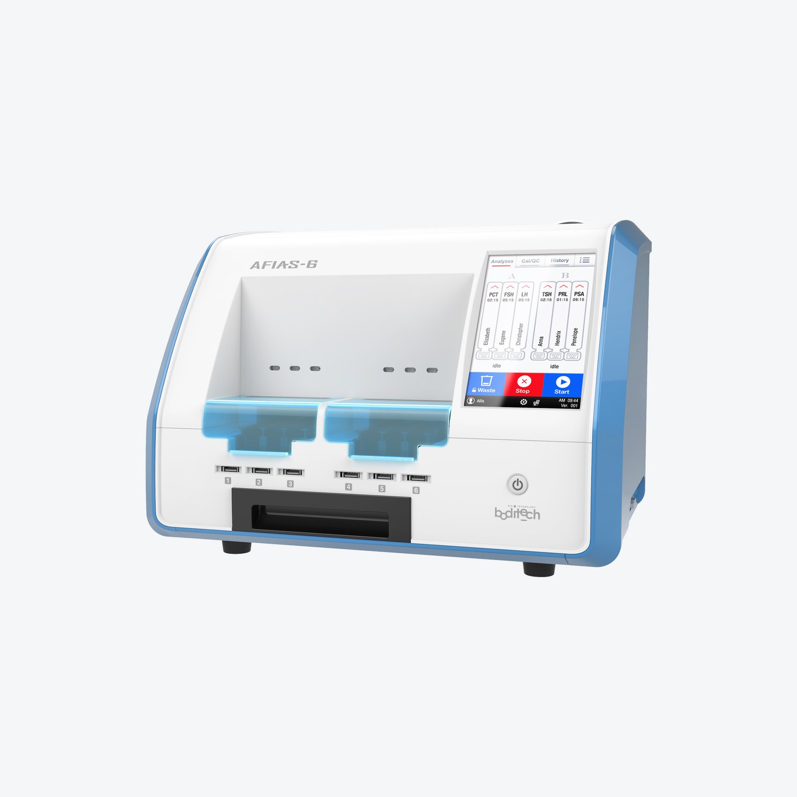 AFIAS-6 is a unique integrated (sample-to-answer) system featuring 6 parallel tests of differing parameters, fast turn-around and high sensitivity, rivaling those of the full-featured systems in commercial labs.