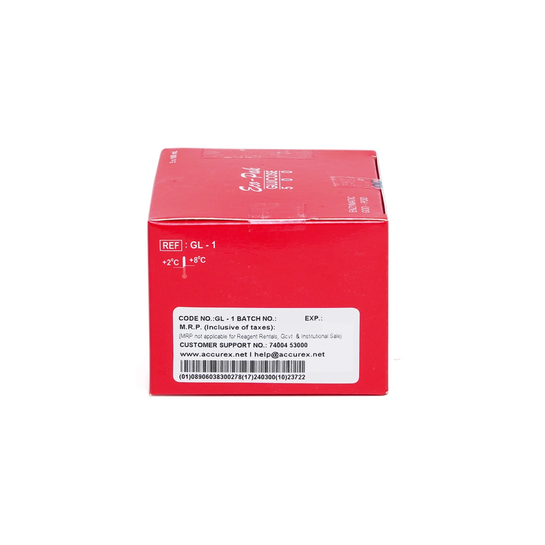 Glucose oxidase (GOD) converts glucose to gluconic acid. Hydrogen peroxide formed in this reaction, in presence of peroxidase (POD), oxidatively couples with 4-aminoantipyrine and phenol to produce red quinoneimine dye. This dye has absorbance maximum at 505 nm. (500 – 550 nm.). The intensity of the color complex is directly proportional to the concentration of glucose in the specimen.